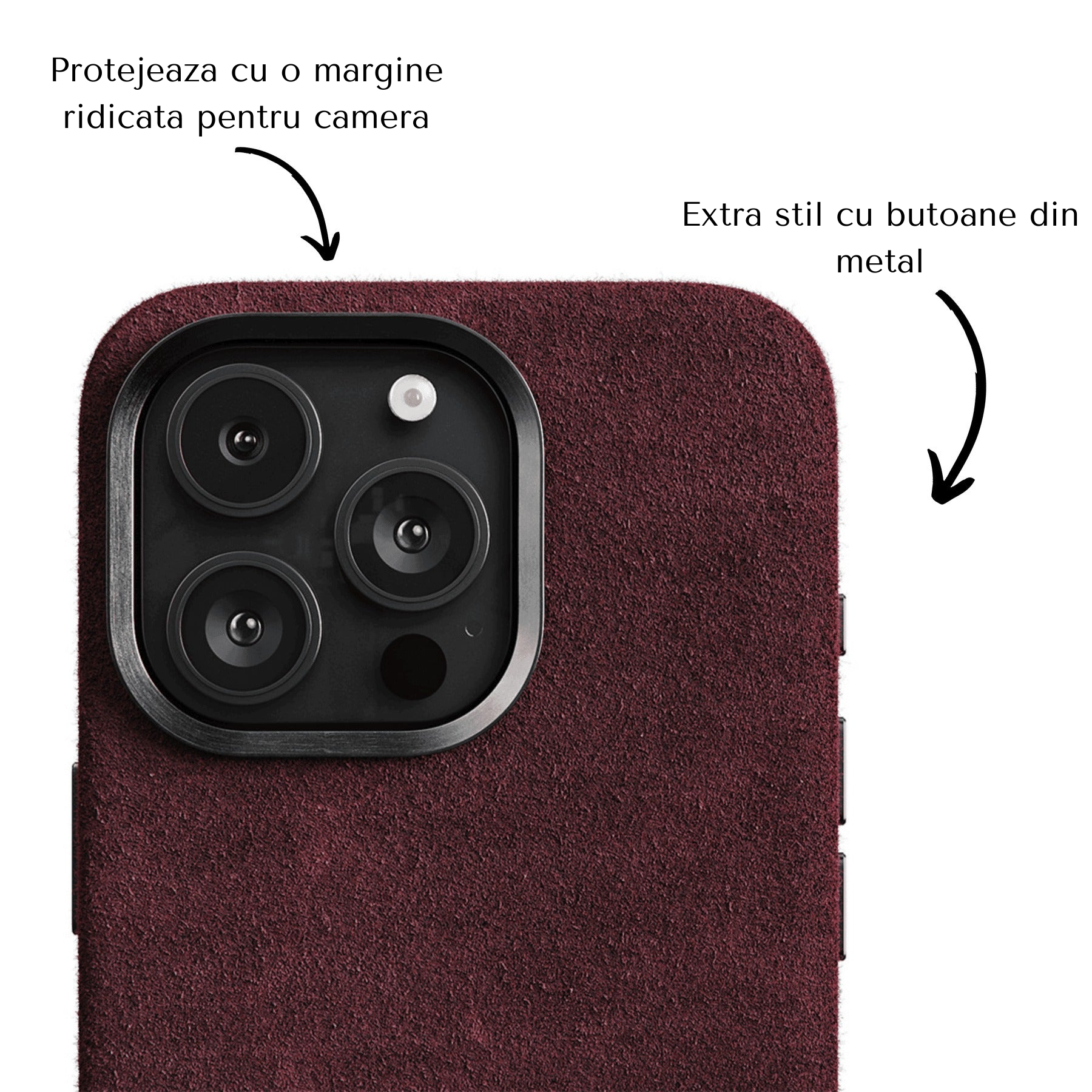 Fabricata din alcantara autentica, aceasta husa ofera o senzatie catifelata la atingere si un aspect sofisticat, perfect pentru un stil rafinat. Materialul premium nu doar ca imbunatateste aspectul telefonului, dar asigura si o protectie excelenta impotriva zgarieturilor, socurilor si uzurii zilnice.